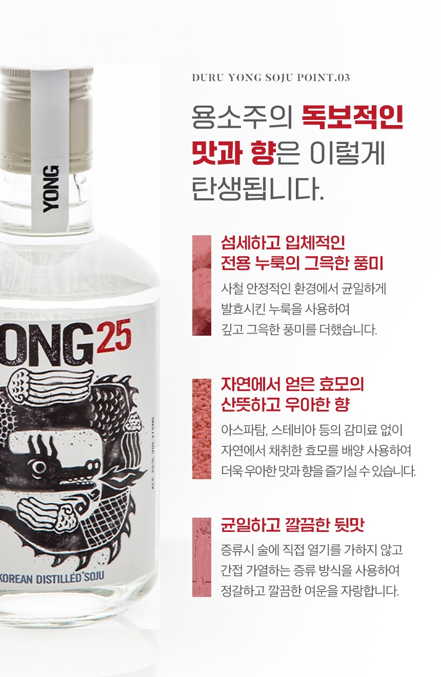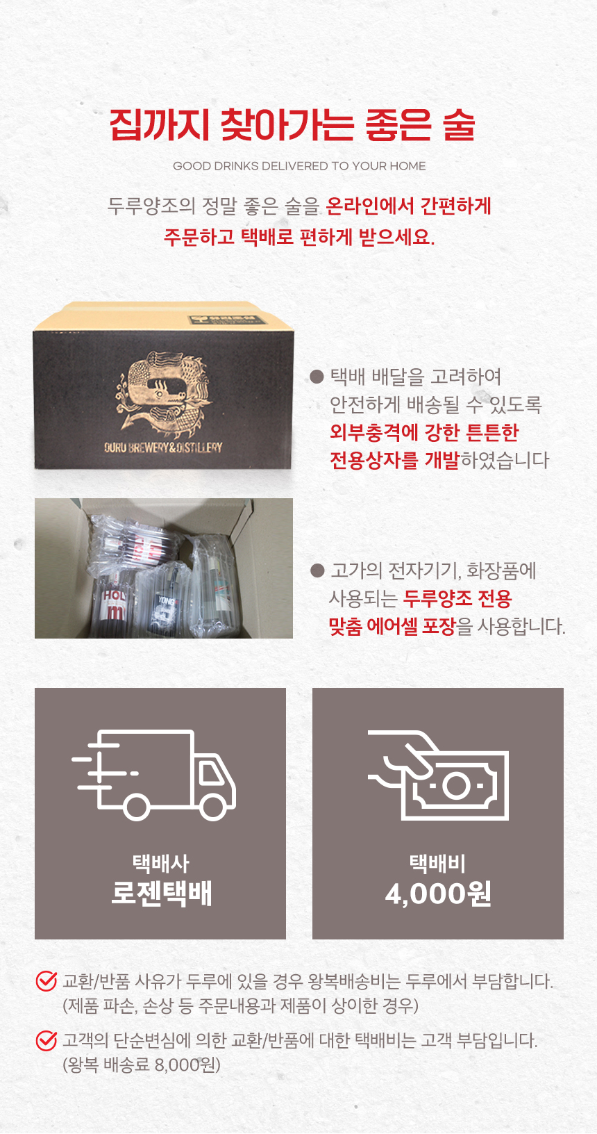 간접 가열 증류 공정과 무감미료를 고집하여 언제나 최고의 품질을 전달합니다.