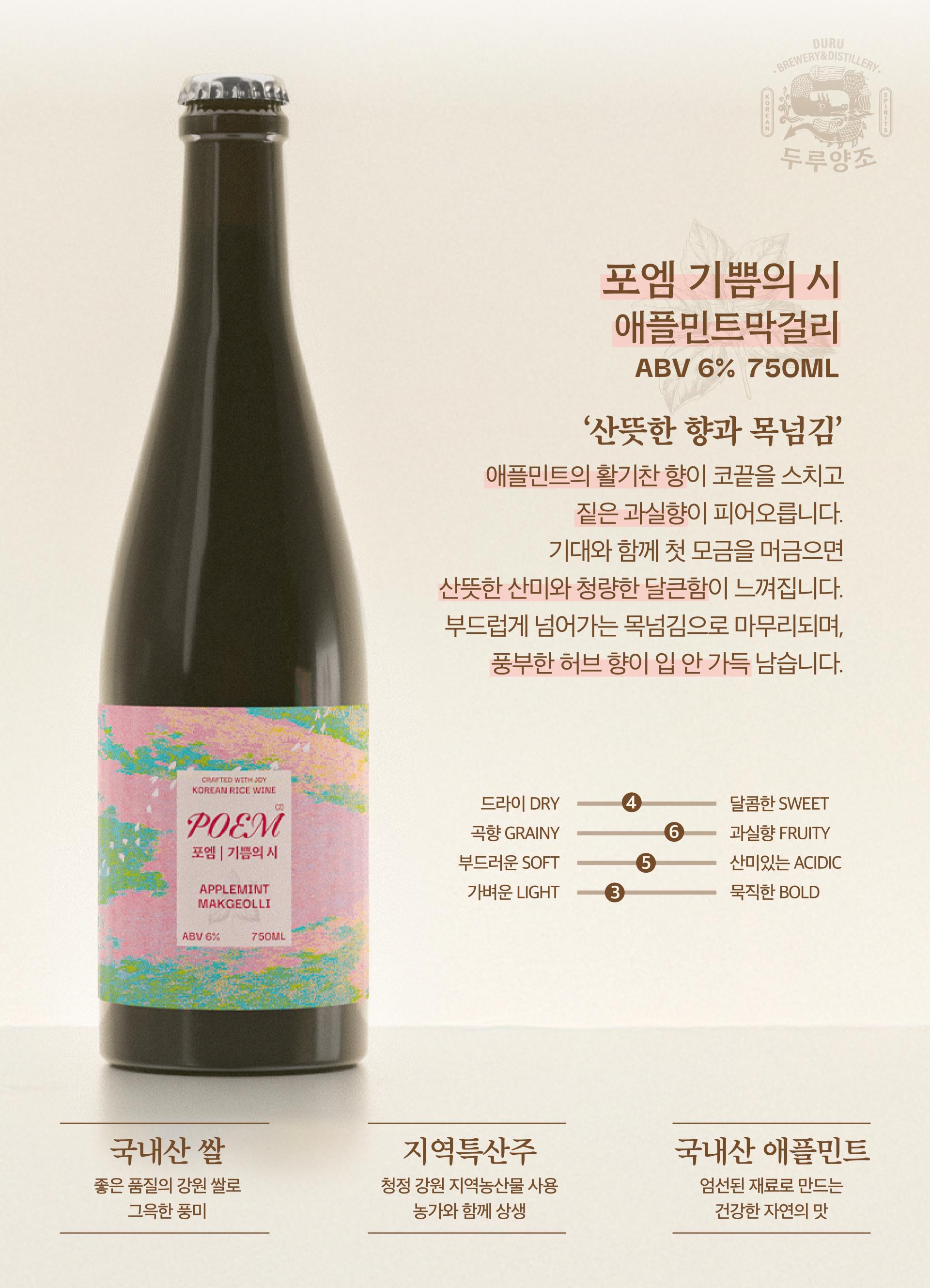 포엠 기쁨의시 - 애플민트막걸리 750ml / 5%