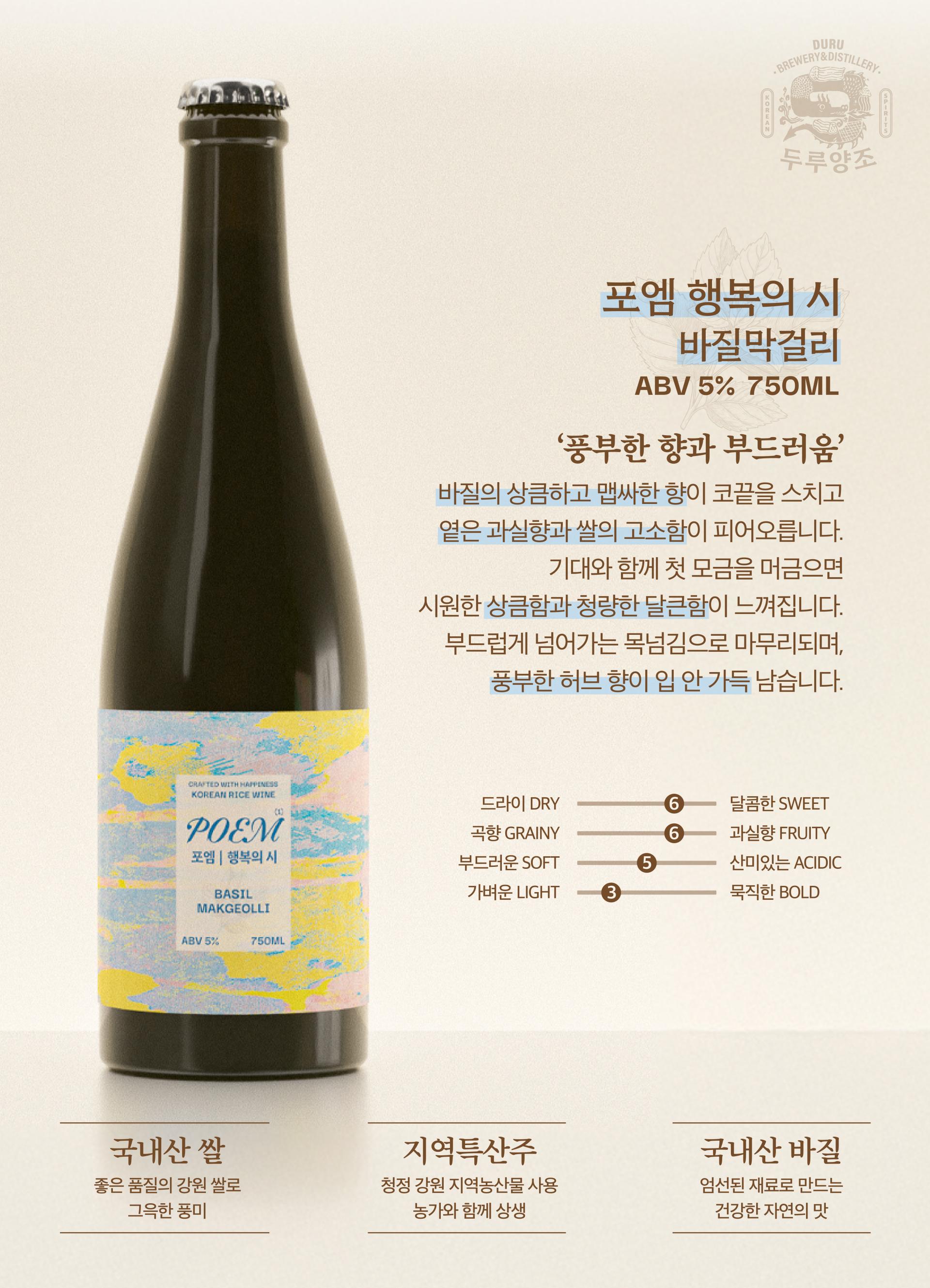포엠 행복의시 - 바질막걸리 750ml / 6%