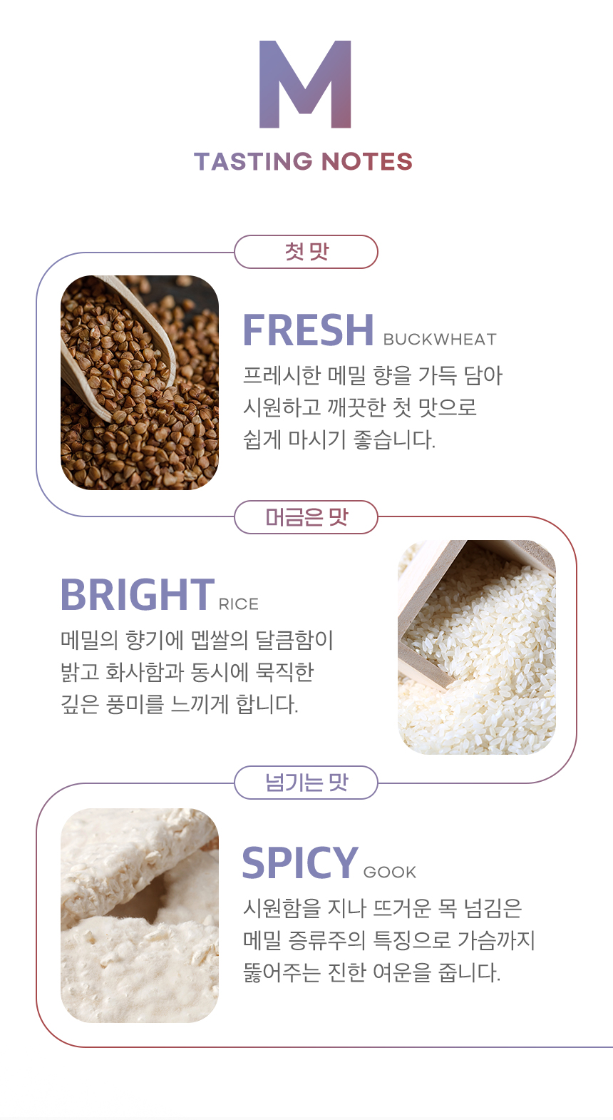 시원하고 화사한 메밀 향을 가득 담은 24도 정통 증류주